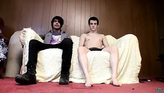 Loads of straight boys jerk off together, but fewer are willing to lend a friend a hand. Devin is pretty experienced when it comes to mutual jack off sessions, he doesn't hold back. He's easily convincing his straight buddy Brian to get his hand on his big uncut cock, returning the favor of course. The boys furiously stroke each other, with Brian clearly loving the feel of that big boner in his fist as Devin wanks him off in return. He doesn't even flinch when that big juicy boner starts splashing out cum! It's a shame Devin is being an asshole and leaves his buddy hanging though, poor guy.