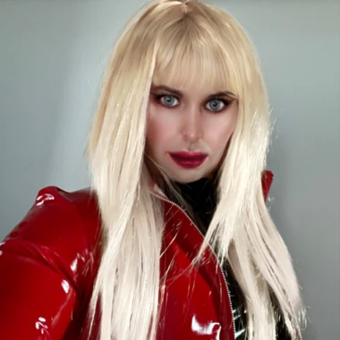 Leather lady smoking